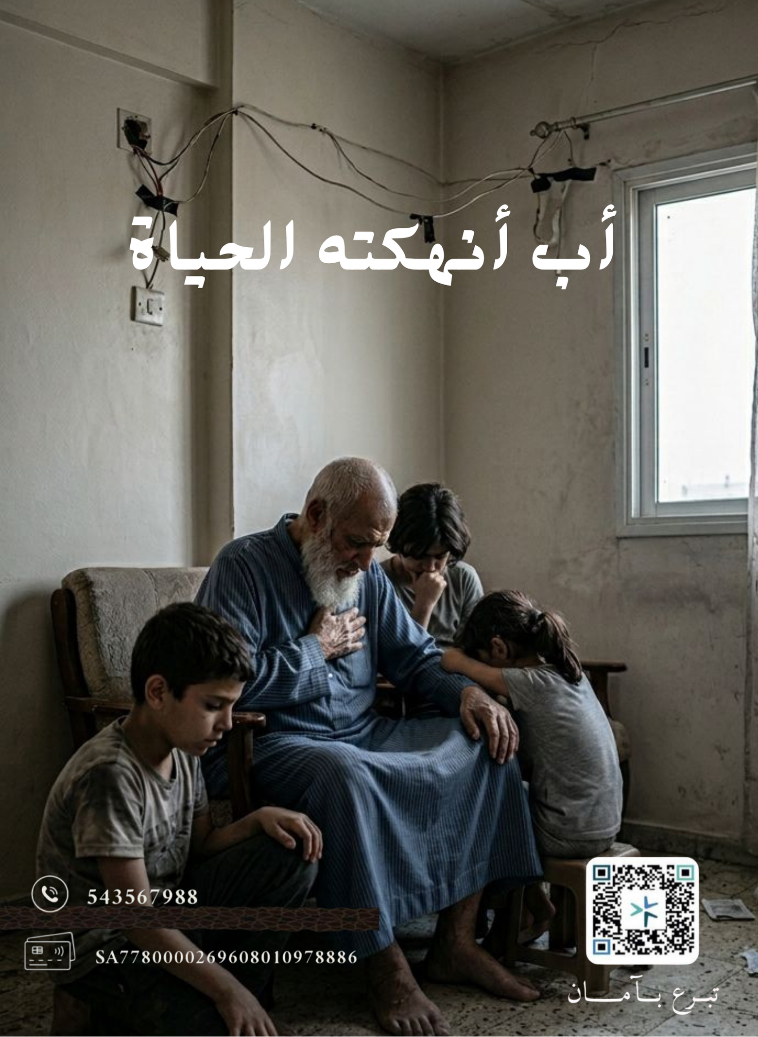 هذا المسن لا يطلب من الدنيا سوى “نَفَس” يبقيه حيًا. يعاني من انقطاع جهاز الأكسجين والكهرباء وتراكم الديون، وسط عجزٍ يثقل أسرته المكونة من ستة أطفال يشاهدون تدهور حالته يومًا بعد يوم. حالته اليوم تحتاج إنقاذًا عاجلًا قبل أن ينقطع النفس الأخير. ﴿ وَمَنْ أَحْيَاهَا فَكَأَنَّمَا أَحْيَا النَّاسَ جَمِيعًا ﴾.